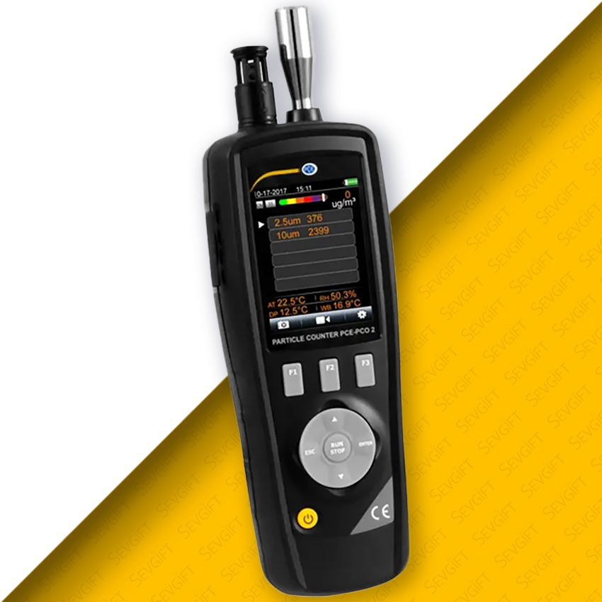 - PCE-PCO 2 partikül sayacı, egzoz gazları, duman ve diğer zararlı hava kirleticilerine maruz kalma seviyelerini ölçmek için geliştirilmiş hassas bir ölçüm cihazıdır. Ayrıca, tarımsal toz, karbonlu toz, kimyasal toz, metal tozu, plastik tozu ve odun tozu gibi havada taşınabilen yanıcı tozların konsantrasyonlarını izlemek için ideal bir çözümdür.
