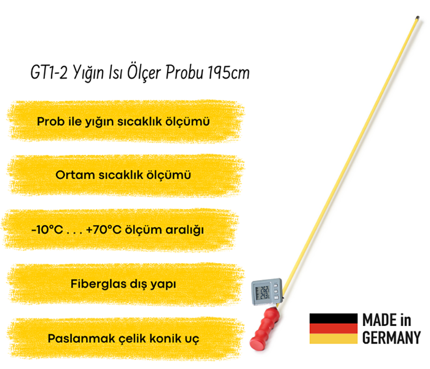 profesyonel bir ölçüm çubuğudur. -10 °C ile +70 °C arasındaki sıcaklıkları hassas biçimde ölçerek tahıl, silaj, saman, kuru ot ve kompost gibi