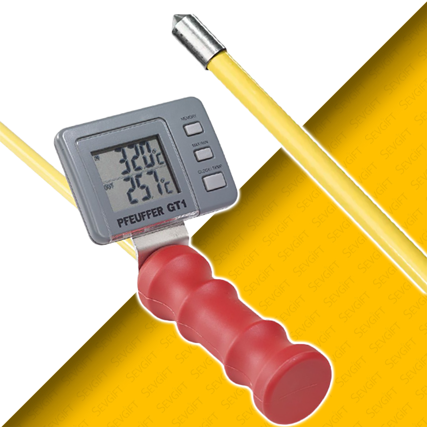 Pfeuffer GT1 sıcaklık probu, tahıl depolarında, silolarda ve yem depolama alanlarında yığın içi sıcaklığı hızlı ve güvenilir şekilde kontrol etmek için tasarlanmış profesyonel bir ölçüm çubuğudur.