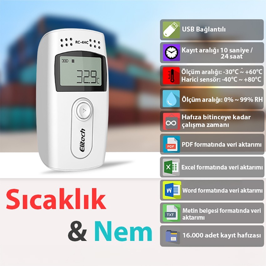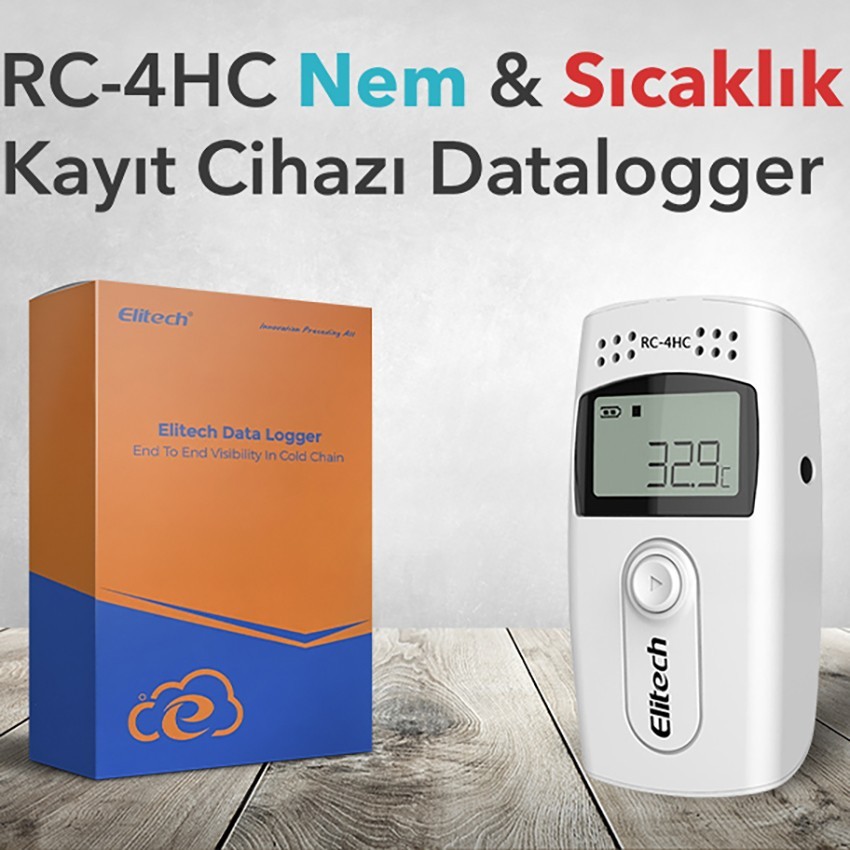 RC-4HC Sıcaklık ve Nem Kayıt Cihazı Datalogger; 16.000 adete kadar sıcaklık ve nem kaydı yapabilen, kaydettiği bu bilgileri Excel, Word, PDF ve Txt formatında döküm olarak verebilen ekonomik fiyatlı hassas datalogger çeşididir.