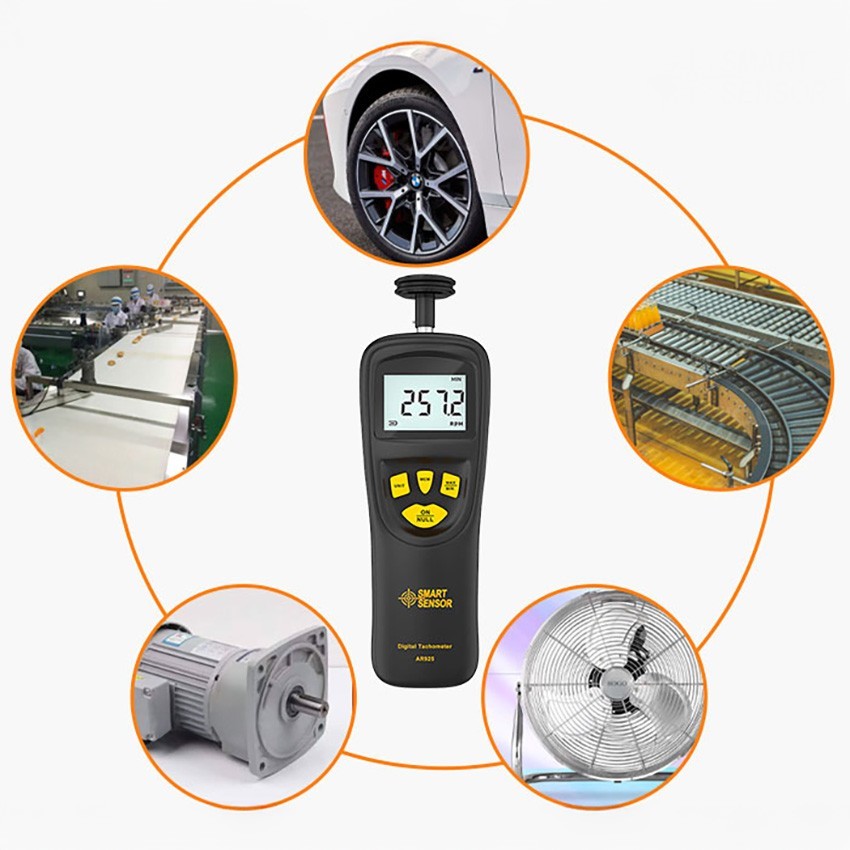 Smart Sensor AR 925 temaslı takometre; Dönen cisimleri, yanında gelen uygun aparatı kullanarak,