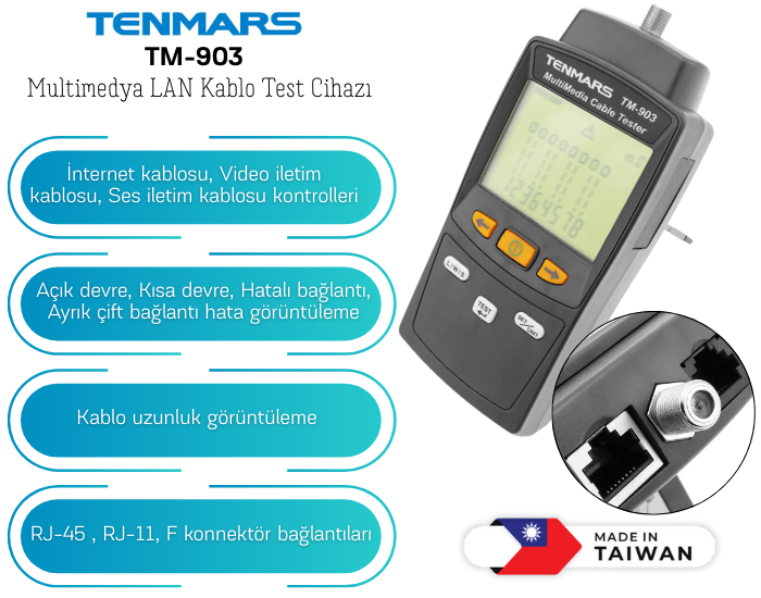 Cem LA-1011 model ölçüm cihazı; akım, voltaj ve direnç gibi multimetre işlevli ölçümlerinin yanı sıra, ağ kablolarının testi, telefon hatlarını ve diğer hatları test etmek için kullanılan hassas test cihazıdır.