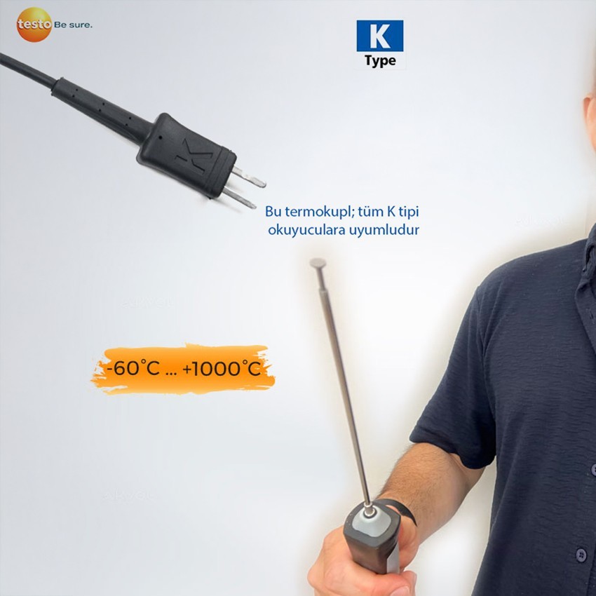Testo 0602 4892 k tipi termokupl ürünü; uç kısmındaki mıknatıs yapı ile metal yüzeylere tutunarak -50 … +400 °C sıcaklık değerleri arasında ölçüm yapabilen yüksek kalitede bir sıcaklık ölçer probdur. Ölçüm yapabilmek için bir K tipi okuyucuya ihtiyaç durmaktadır.