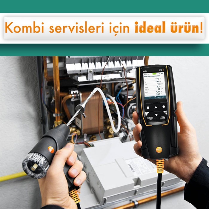 Testo 310 II (0563 3105) baca gazı analiz cihazı; küçük yakma tesisleri (petrol ve gaz), düşük sıcaklıktaki yoğuşmalı kazanlar, gazlı su ısıtıcıları gibi alanlarda O2, CO ve CO2 değerlerinin amaca uygun düzenlenmesi, gazlı su ısıtıcılarında gaz akış basıncının ölçülmesi ve düzenlenmesi gibi ölçümleri yapabilen, yeni eklenen özellikler ile artık akıllı (smart App) profesyonel bir ölçüm cihazıdır.