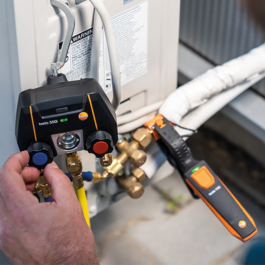 Testo 550i akıllı manifold seti; ölçüm sonuçları sadece akıllı cihazlarla ile takip edilebilen, klima sistemleri,soğutma sistemleri, ısı pompalarının devreye alınması gibi alanlarda bakım, onarım ve kontrol işlemleri için kullanılan piyasadaki en küçük manifold cihazıdır. 2 yollu valfe ve bluetooth özelliğine sahiptir.