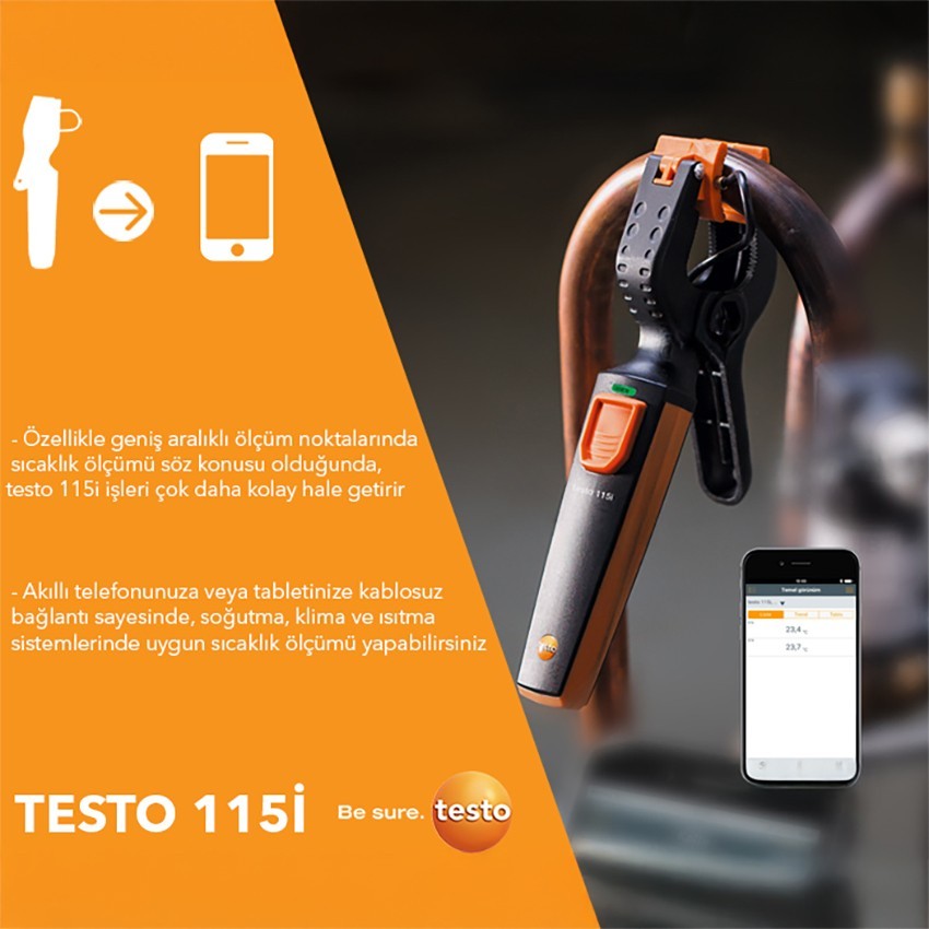 - Testo 115i akıllı prob ile; fark sıcaklığını, basma hattı sıcaklığını, emme hattı sıcaklığın gibi kontrollerin yapılması işleminde kullanılır.