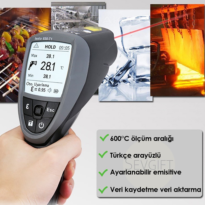 - Testo 835-T1 infrared sıcaklık ölçer 600°C ye kadar uzaktan sıcaklık ölçümü yapabilmektedir.