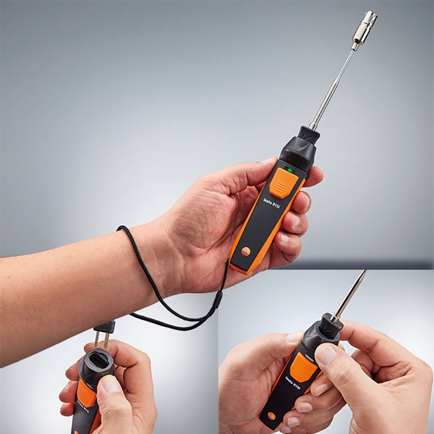 - Testo 915i 'nin tutma kısmı tüm Testo ve standart K tip termokupl probları ile uyumludur, ölçüm aralığı dahilinde sıcaklık ölçümleri yapılabilir.