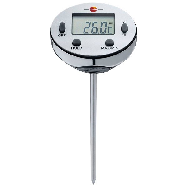 Testo üstten göstermeli mini termometre; 20.5 cm prob uzunluğuna sahip dijital bir sıcaklık ölçüm cihazıdır. Paslanmaz çelik proba sahip olan bu termometre cihazını, sıvılarda ve yarı katı gıdalarda kolay bir şekilde kullanabilirsiniz.