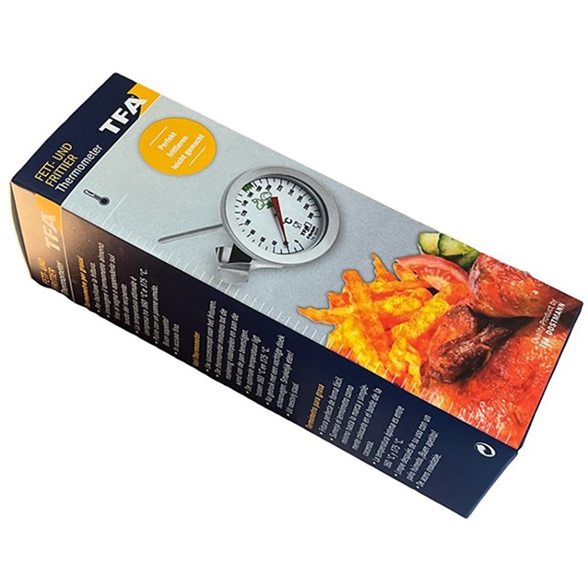 Tfa 14.1024 kızartma yağı termometresi; et, balık, patates pişirirken mükemmel kızartmayı kolay bir şekilde yapmanızı sağlayan analog ekranlı yağ termometresidir.