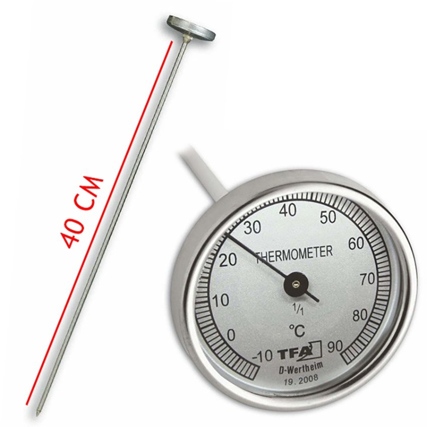 Tfa 19.2008 termometrenin prob uzunluğu 40 santimetredir. Kullanıcının termometreyi sıcaklık ölçülecek yığının içine yerleştirmesine ve böylece daha doğru ve kapsamlı bir sıcaklık ölçümü yapmasına olanak tanır.