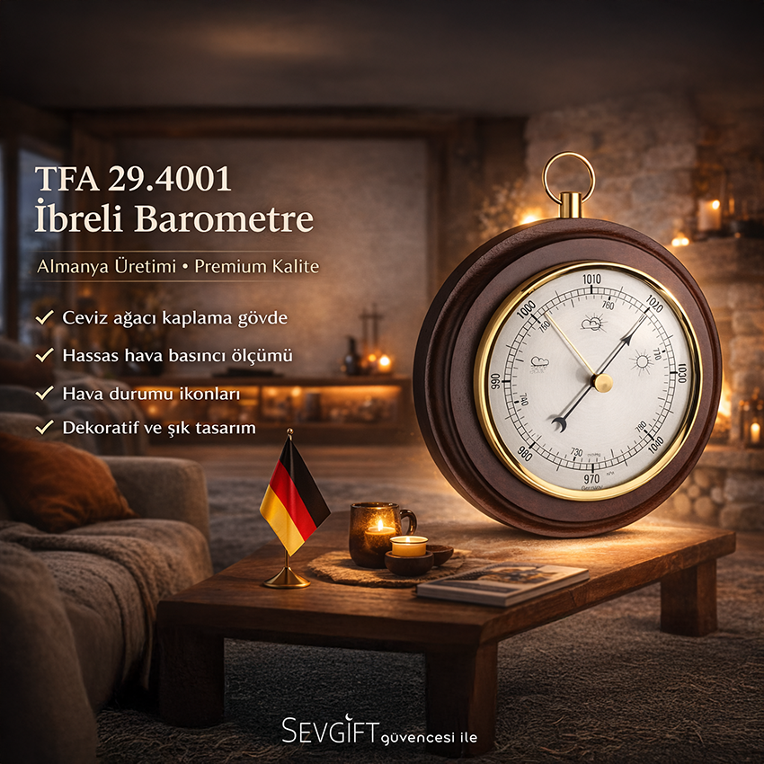 - Tfa 29.4001 ibreli barometre ölçüm cihazının dış yapısı ceviz ağacı kaplamasından oluşmaktadır.