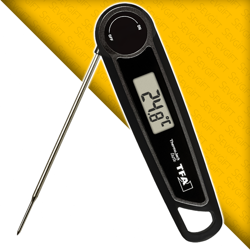 - TFA 30.2035.01, et, tavuk, balık, şekerleme, hamur işleri, süt ürünleri, soslar gibi birçok gıdanın iç sıcaklığını doğrudan ölçmek için kullanılan dijital bir gıda termometresidir.