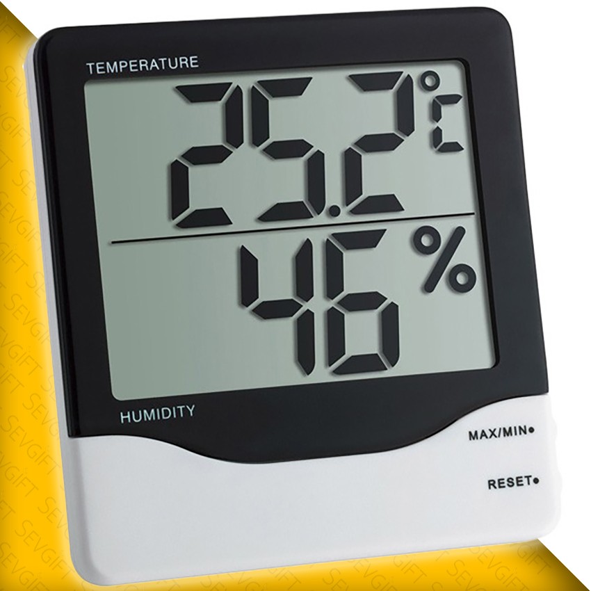 Herhangi kapalı bir ortamda bulunan sıcaklık ve nem değerini ölçebilen, aynı zamanda eş zamanlı olarak MAX ve MIN değerlerini sürekli olarak ekranda gösterebilen, şık görüntüye sahip sıcaklık ve nem ölçüm cihazıdır.