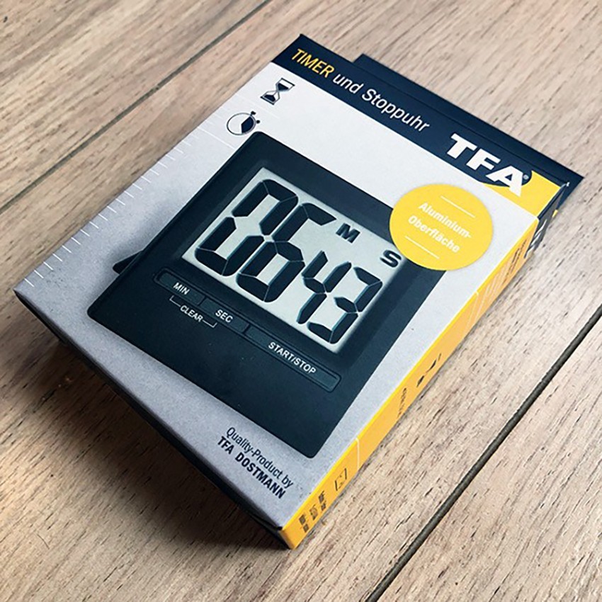 TFA 38.2013 elektronik zamanlayıcı, 99 dakika 59 saniyeye kadar hem ileri hem de geri sayım yapabilen, bip sesli alarm özelliğine sahip, geniş ve net ekranıyla kolay okunabilir bir dijital zamanlayıcı cihazdır. Kullanıcı dostu tasarımı ve sık görüntü özelliğiyle pratik bir kullanım sunar.