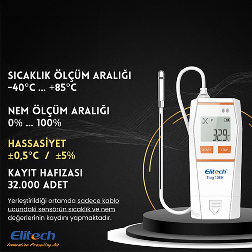 Elitech Tlog 10EH, gıdaların, ilaçların ve diğer hassas ürünlerin depolanması ve taşınması sırasında sıcaklık ve nem seviyelerini izlemek ve kaydetmek için kullanılan bir veri kaydedici cihazdır. Soğuk zincir lojistiği için özel olarak tasarlanmış olan bu cihaz, laboratuvarlar, hastaneler, eczaneler gibi sıcaklık ve nemin kritik olduğu alanlarda da kullanılabilir.