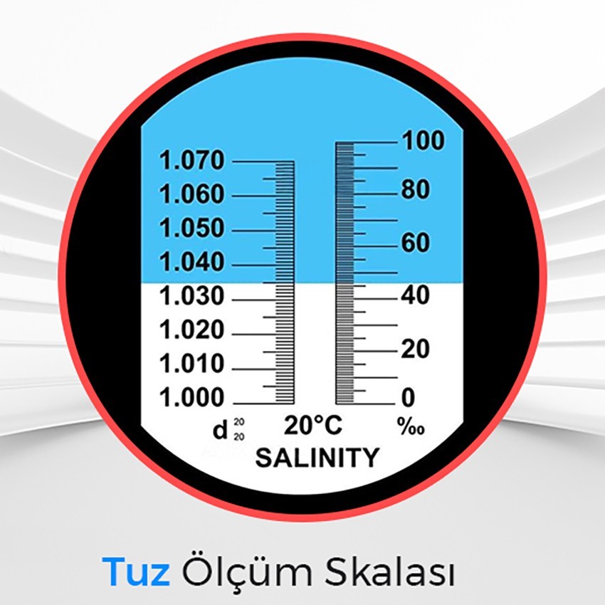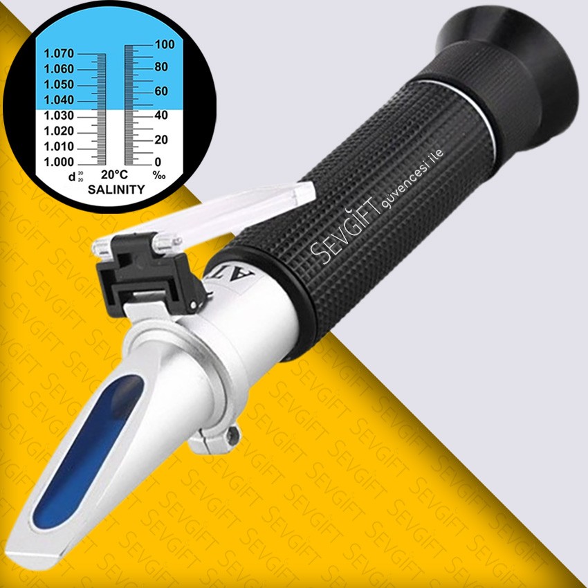 Tuzluluk ve yoğunluk ölçer refraktometre, sıvılardaki tuz oranını ve yoğunluğu hassas şekilde ölçmek için idealdir. Akvaryum, deniz suyu ve gıda uygulamalarında pratik ve güvenilir kullanım sunar.