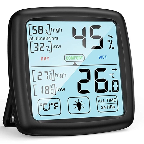 Herhangi kapalı bir ortamda bulunan sıcaklık ve nem değerini ölçebilen, aynı zamanda eş zamanlı olarak MAX ve MIN değerlerini sürekli olarak ekranda gösterebilen, şık görüntüye sahip sıcaklık ve nem ölçüm cihazıdır.