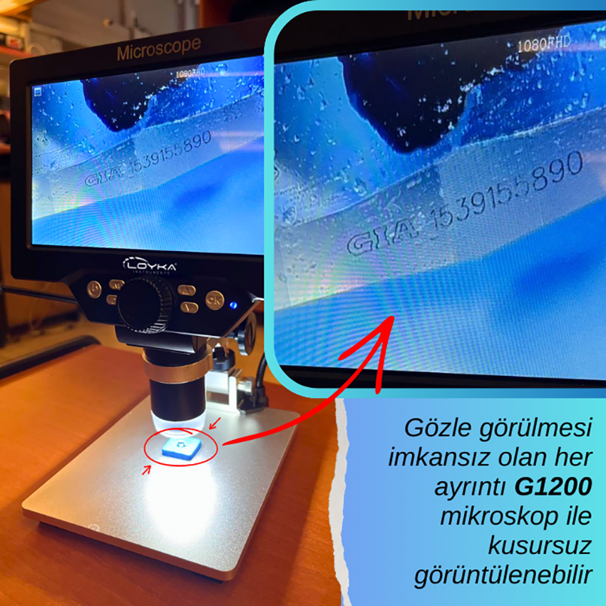G1200 ekranlı mikroskop ile en küçük ayrıntılar bile kolaylıkla görüntülenebilir.