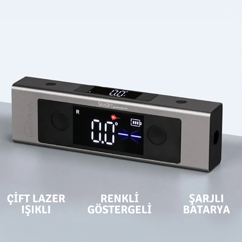 5342 dijital eğim ölçer; profesyonel olarak iş yerinde dijital su terazisi olarak kullanılan, bunun haricinde ev kullanıcıları tarafından da sıklıkla tercih edilen ve güvenilen, açıları kolaylıkla ölçebilen, şık görüntüye sahip renkli göstergeli ölçüm cihazıdır. Bir marangoz veya tadilatçı iseniz; Loyka 5342 eğim ölçüm cihazı alet çantanız için bir zorunluluktur. Eğim ölçümünün yanı sıra lazer işaretleyicilerde işlerinizi kolaylaştırmaktadır.
