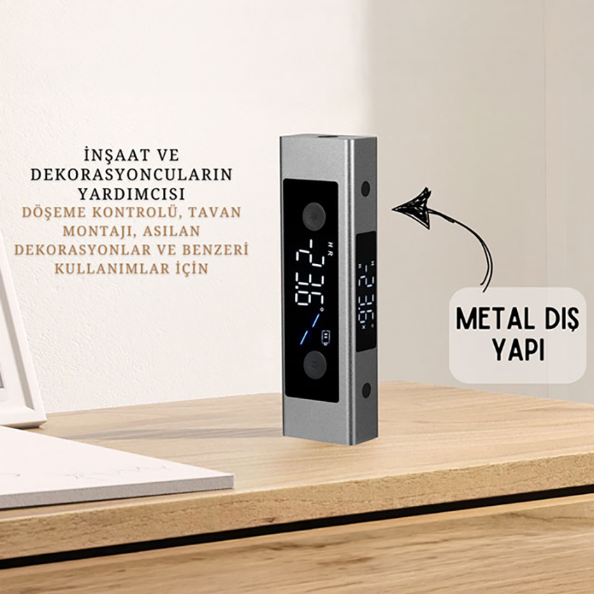 5445 dijital eğim ölçer, hem profesyonel hem de ev kullanıcıları için dijital su terazisi olarak tasarlanmış, renkli ekranı ve lazer işaretleyicileriyle öne çıkan bir ölçüm cihazıdır. Özellikle marangozlar, tadilatçılar, inşaat ustaları ve DIY projeleri ile ilgilenenler için idealdir.
