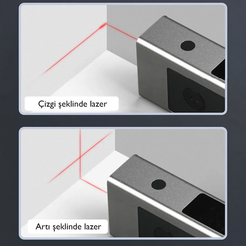 - Loyka 5342 eğim ölçer cihazın ön ve arka tarafında lazer işaretleyiciler bulunmaktadır. Bir tarafından artı şeklinde lazer ışığı çıkarken, diğer tarafından düz çizgi şeklinde lazer ışığı çıkmaktadır.