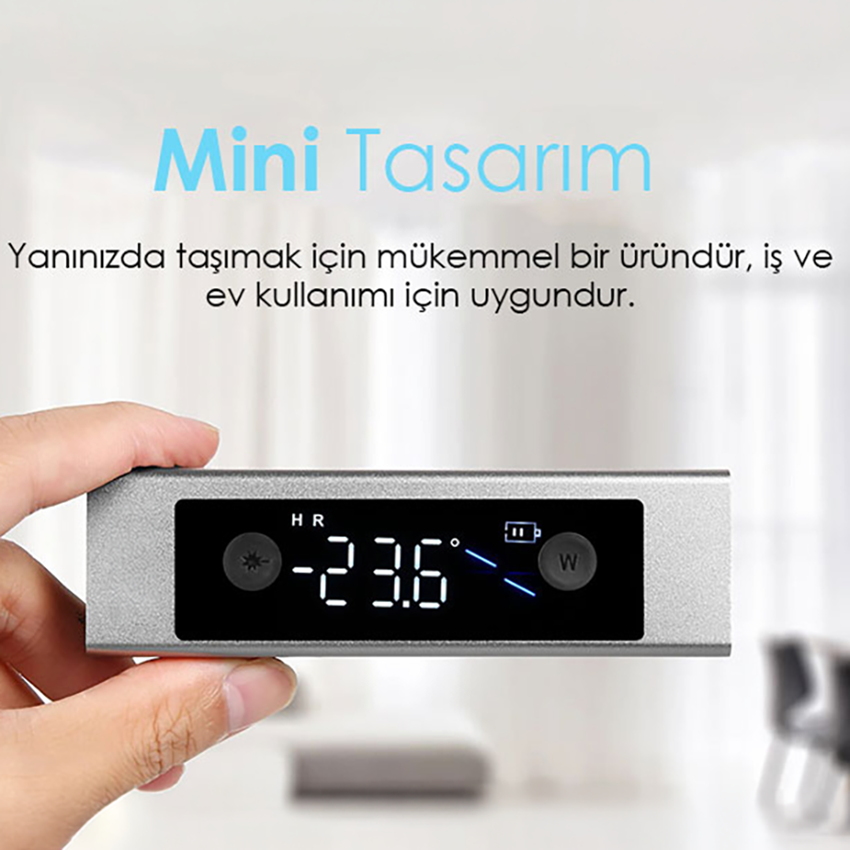 - Bu mini eğim ölçerin güç kaynağı dahili şarjlı bataryasıdır. Yanında gelen usb-c şarj kablosu ile şarj edilebilmektedir.