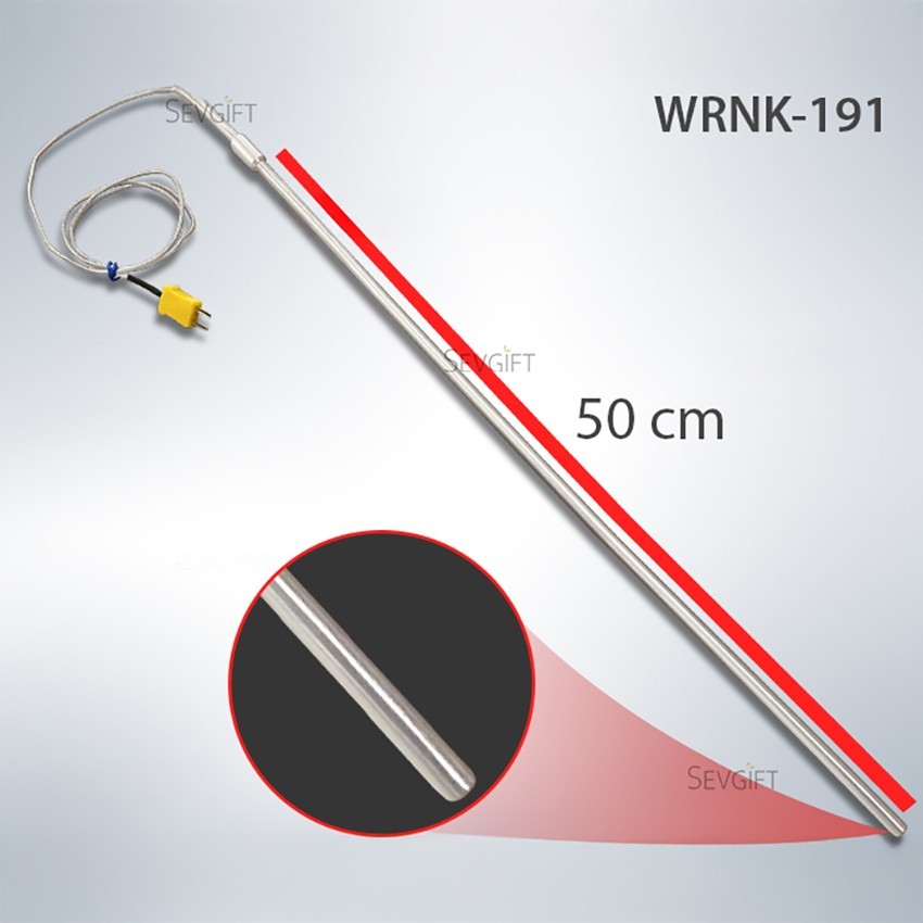 WRNK-191 K tipi sıcaklık ölçer prob; 50 cm prob uzunluğuna ve 1100°C gibi yüksek sıcaklık ölçüm aralığına sahip, harici olarak satın alabileceğiniz dijital bir k tipi prob okuyucusuna bağlanarak ölçüm yapabilen bir prob çeşididir.
