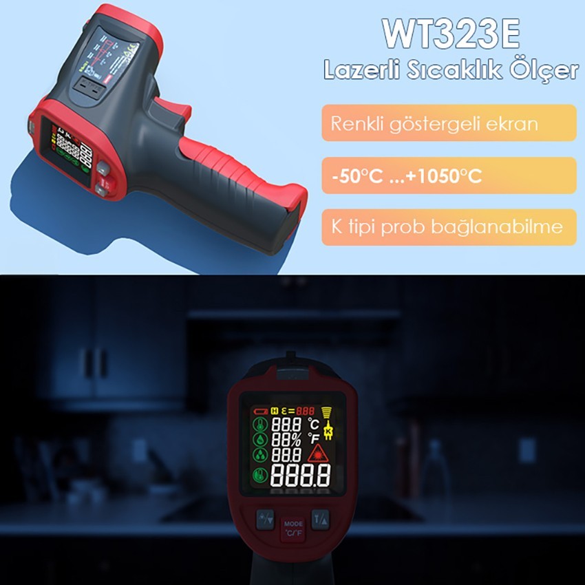 WT323E Rutubet ve Küf Analizli Lazerli Termometre 1050°C