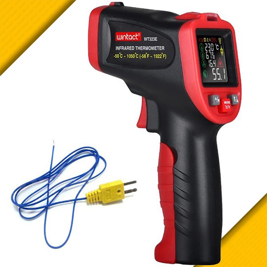 Wintact WT323E termometre, lazerli temassız sıcaklık ölçümü, ortam hava sıcaklığı, nem ölçümü ve çiy noktası (dew point) ölçümü yapabilen, çoklu özelliklere sahip renkli ekranlı ve küf analizi yapabilen profesyonel bir ölçüm cihazıdır. Hava kalitesi kontrolü, iklimlendirme, enerji verimliliği ve sağlık koşulları gibi birçok alanda kullanılabilir.
