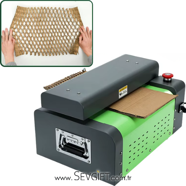 - Bu karton kesme makinesi, büyük ve hacimli karton kutuları kolayca daha küçük şeritlere veya dolgu malzemesine dönüştürür. Elde edilen petek yapılı karton, kırılabilir ürünlerin paketlenmesinde mükemmel bir koruma sağlar. Böylece hem karton atıklar değerlendirilir hem de paketleme için pratik ve ekonomik bir çözüm elde edilir.